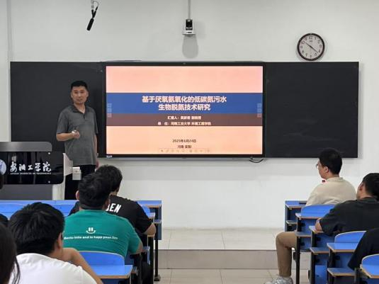6月24日,河南工业大学环境工程学院水污染控制与可持续利用中心主任吴朕君副教授应邀来到Beat365官网,在A02-206教室为环境工程专业师生做了一场题为《基于厌氧氨氧化的低碳氮污水生物脱氮技术研究》学术报告。80余名师生到场聆听。
