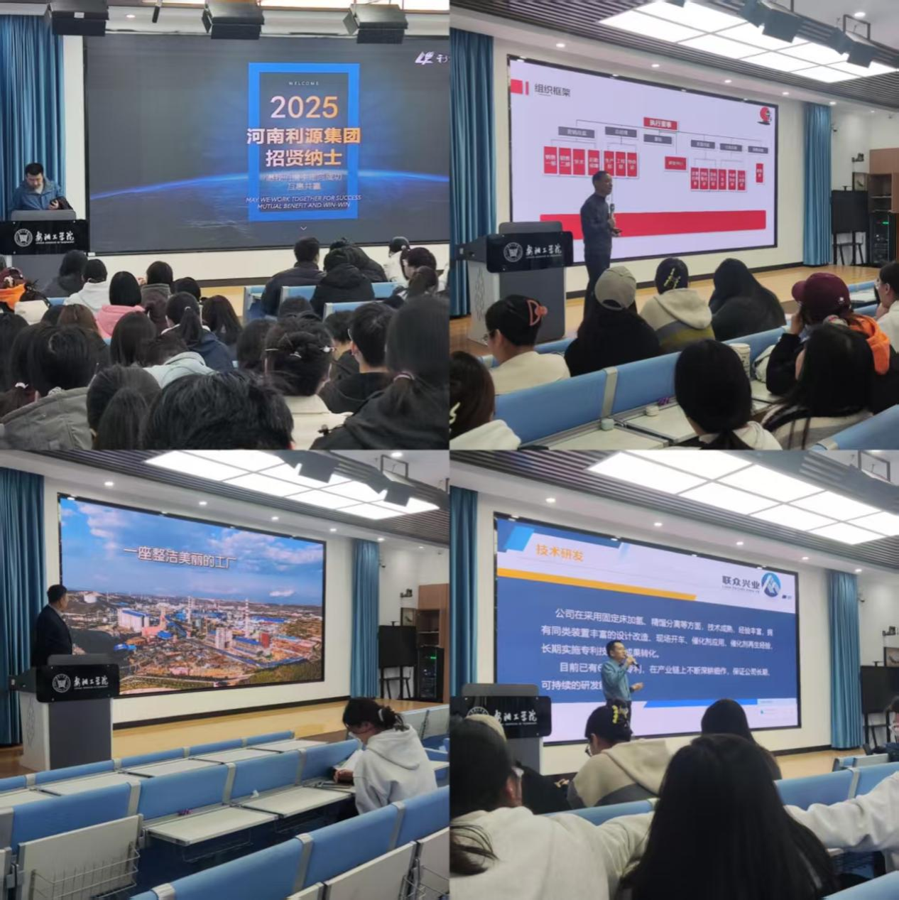 宣讲会上,各企业通过行业趋势解读、岗位需求分析、职业发展路径规划等内容,为学生提供全方位就业指导。利源集团以新能源领域技术研发岗位为核心,展示了“技术+管理”双通道晋升机制;启新药业围绕生物医药产业创新需求,强调跨学科人才培养的重要性;濮阳联众兴业化工有限公司与顺成集团则结合化工行业特点,详细介绍了安全生产、技术创新等岗位的任职要求。毕业生就实习机会、薪资待遇等问题与企业代表展开热烈交流。